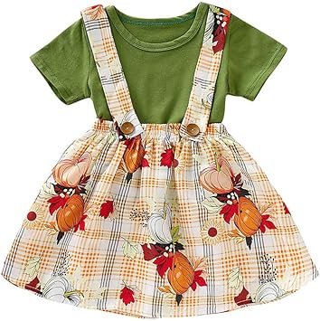 Amazon.co.jp: 女の赤ちゃん用サスペンダー衣装、1歳から5歳児用子供用夏用花柄Tシャツトップス格子縞スカートドレスセット 12-18 Months グリーン dresses baby: ホーム&キッチン