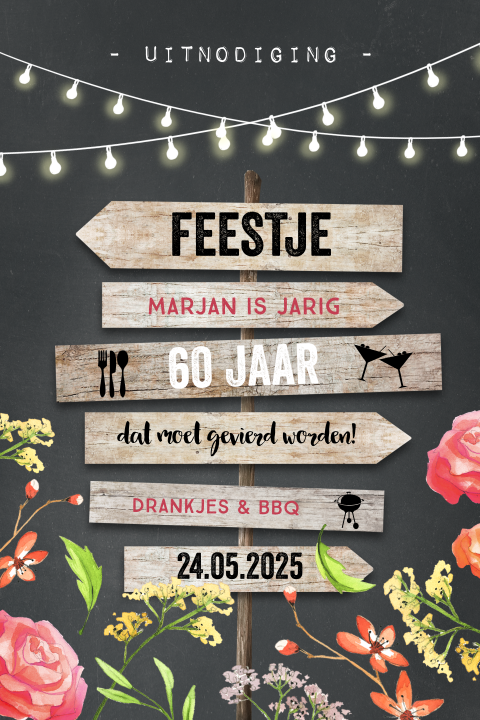 Uitnodiging geboren in 1960 en 60 jaar met bloemen